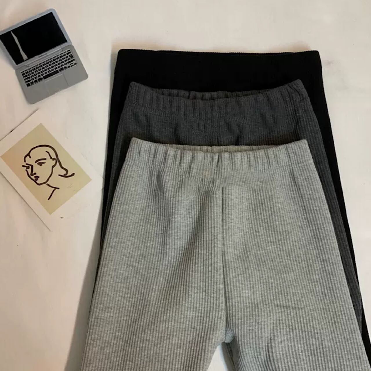 ハイウエスト ストレッチリブレギンスパンツ 3色