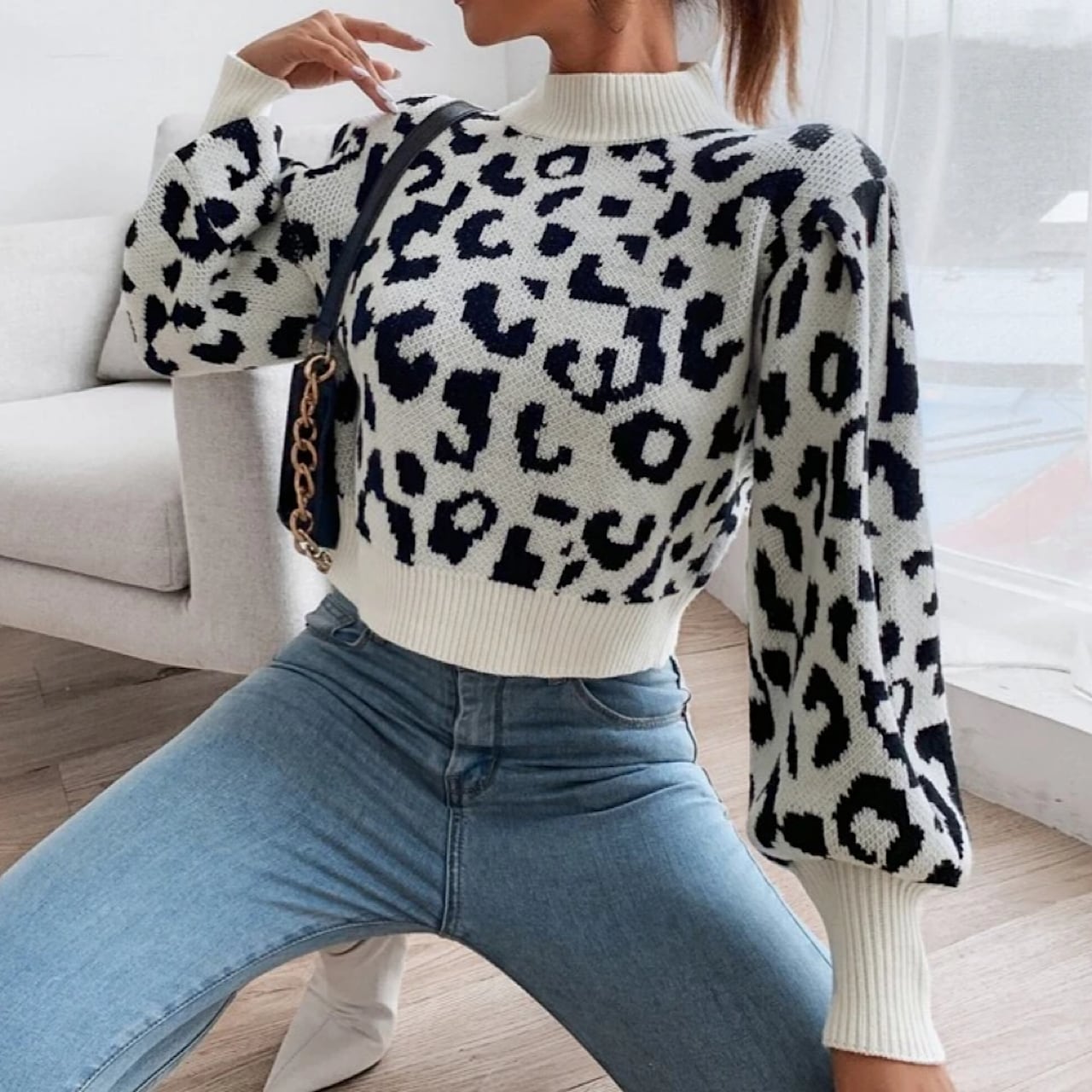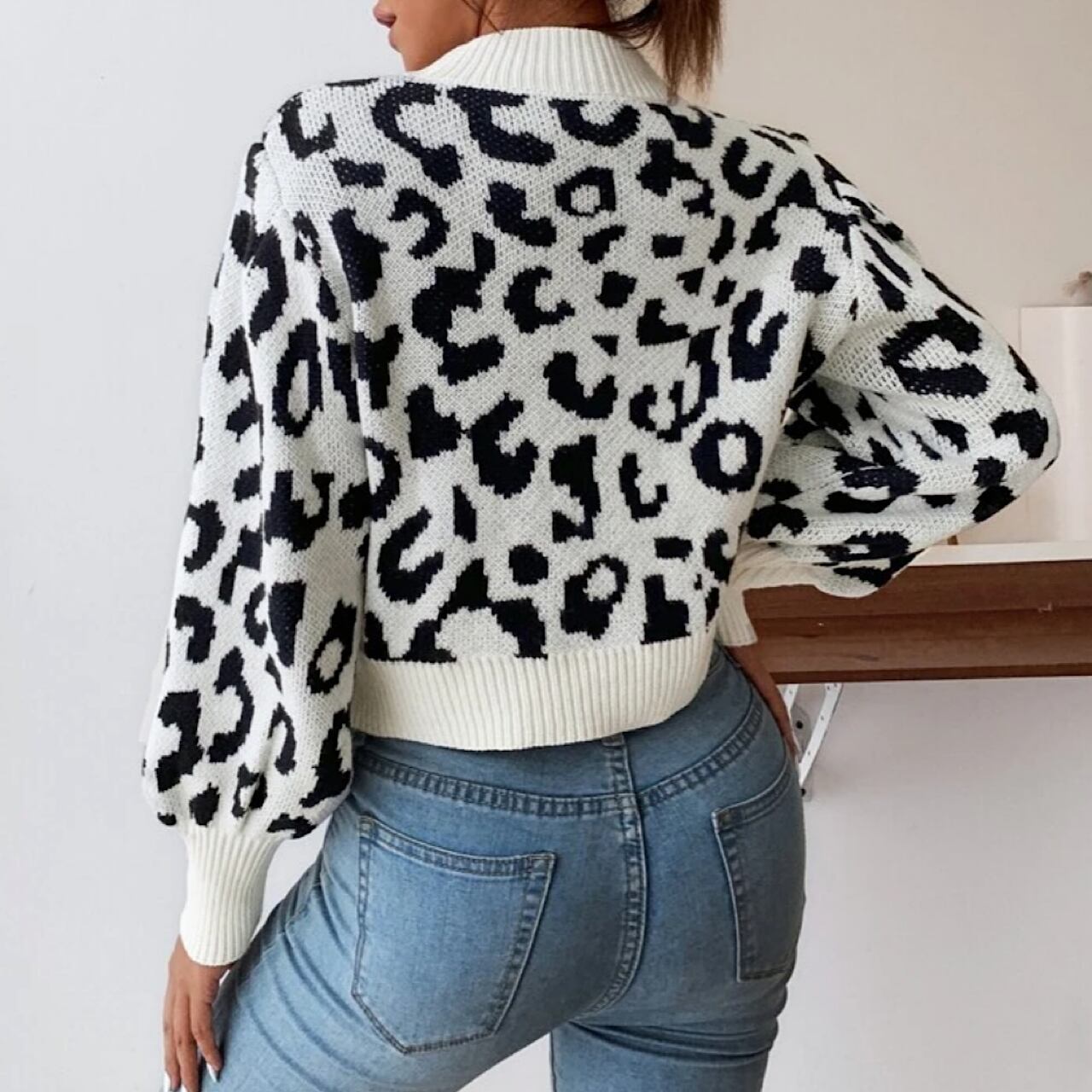 レオパード柄 ショート丈プルオーバーニット